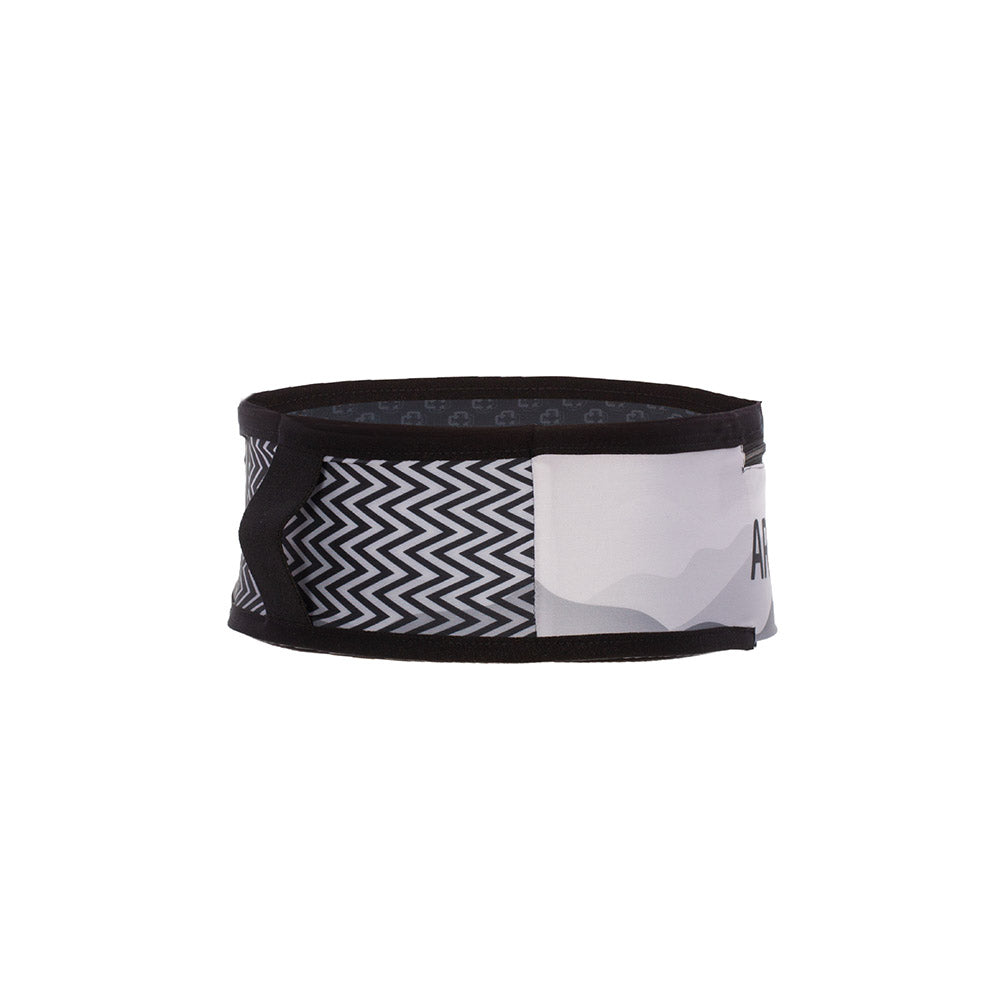 El cinturón ARCh MAX PRO está fabricado con licra ultraligera y cuenta con un bolsillo frontal con cremallera para cargar dispositivos móviles de gran tamaño.