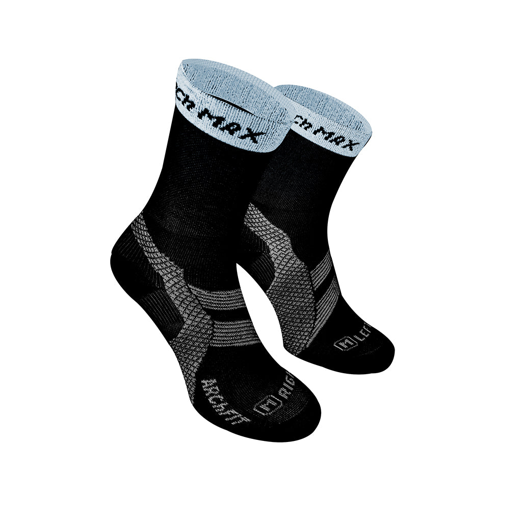 Calcetín deportivo y transpirable de corte de media caña, diseñado para prevenir lesiones mientras practicamos TRAIL RUNNING. La tecnología ARChFIT levanta el arco del pie inclinándolo hacia adentro, amortiguando cada impacto en la recepción del pie, disminuyendo el riesgo de lesiones, cuidando las articulaciones y retrasando el cansancio.